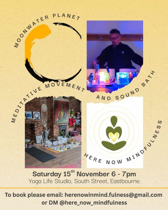 Shashtee – of Here Now Mindfulness, facilitates Mindfulness 8 week courses; Monday mindfulness sessions at Simply Patisserie, Eastbourne; Mindful Movement classes in nature & weekly online meditation classes.